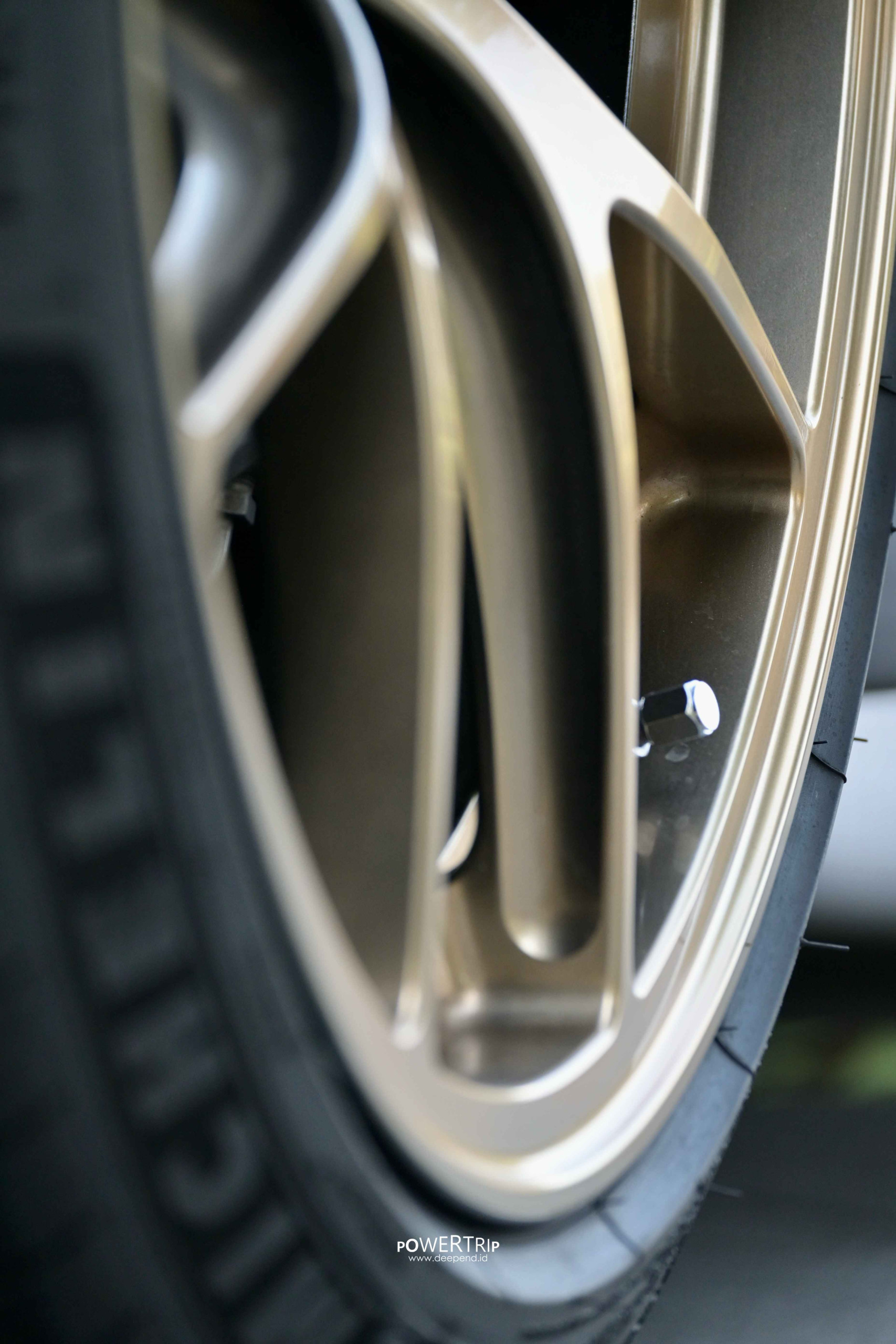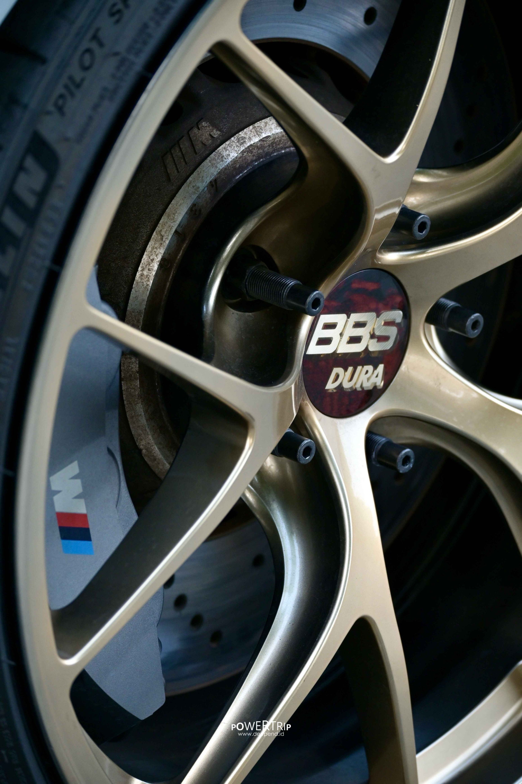 Dari luar, mobil ini tampil galak sekaligus elegan. BBS RID berwarna Diamond Gold adalah keputusan gaya yang berani, tapi justru membuat M2C ini terlihat matang.