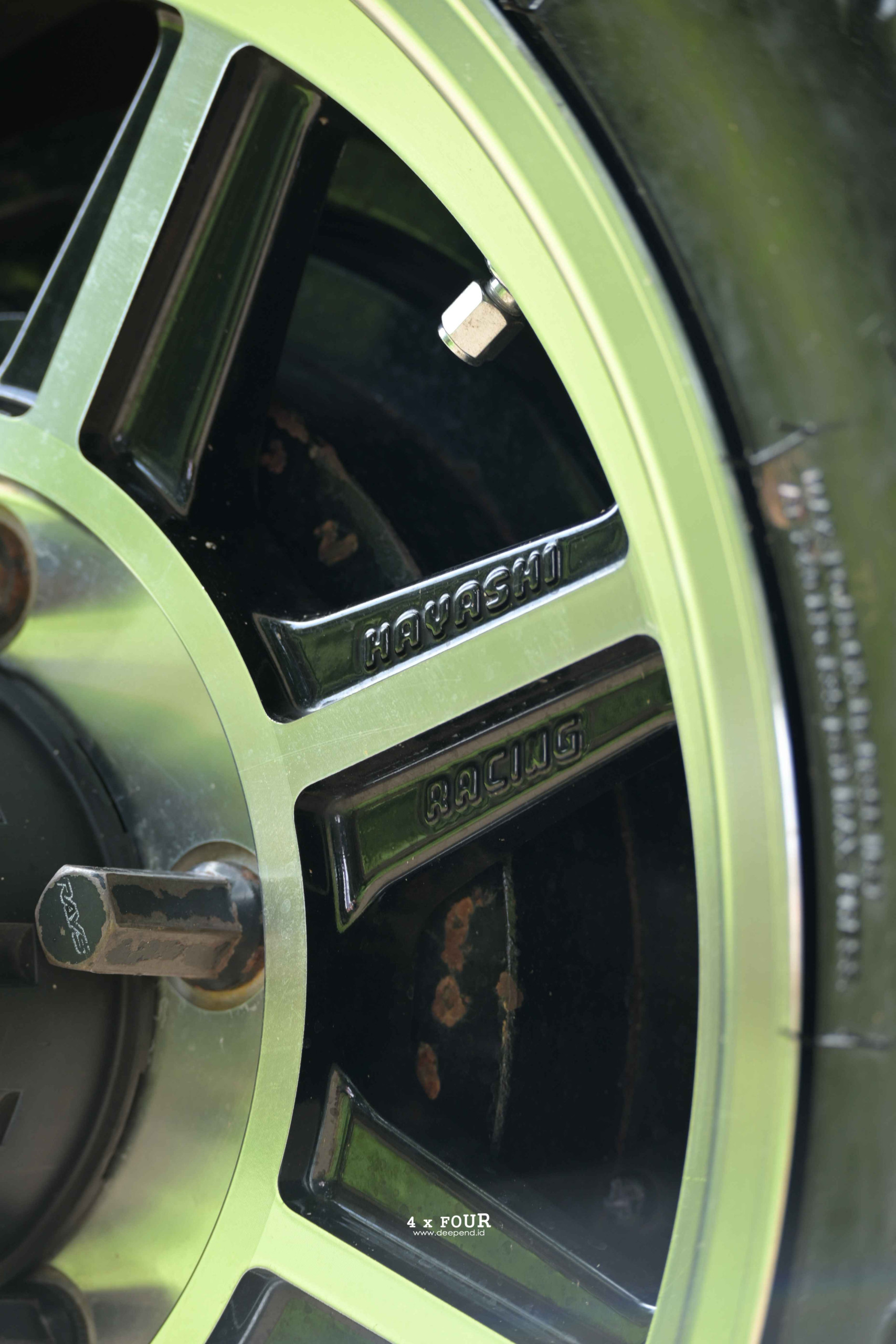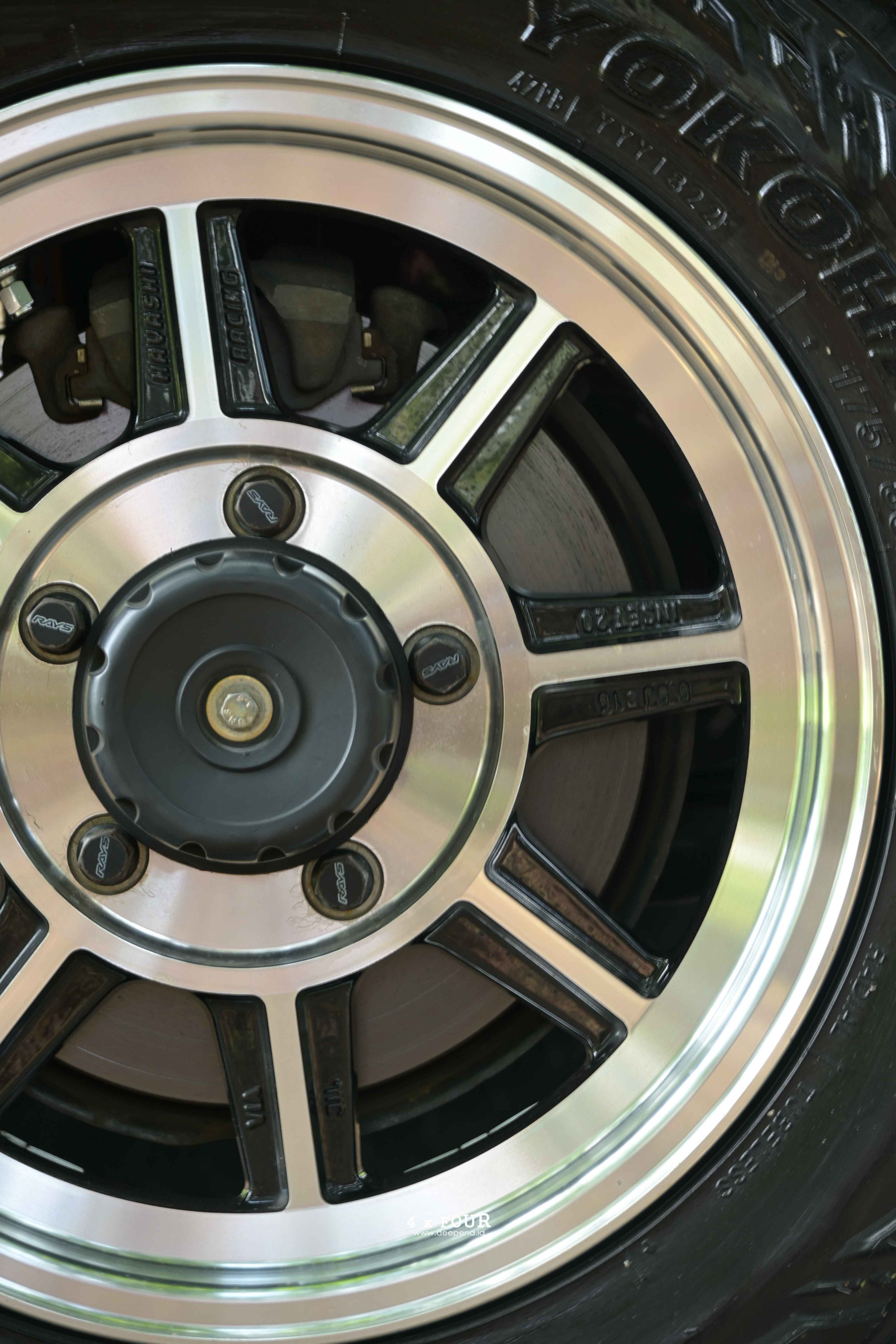 Velg menjadi salah satu elemen yang sering berganti, karena Jimny memang menyenangkan untuk dimainkan di detail kecil. Saat sesi pemotretan, mobil ini menggunakan Hayashi Street Type STJ 16×5,5 inci ET22, dibalut Yokohama Geolandar MT 175/80 R16.