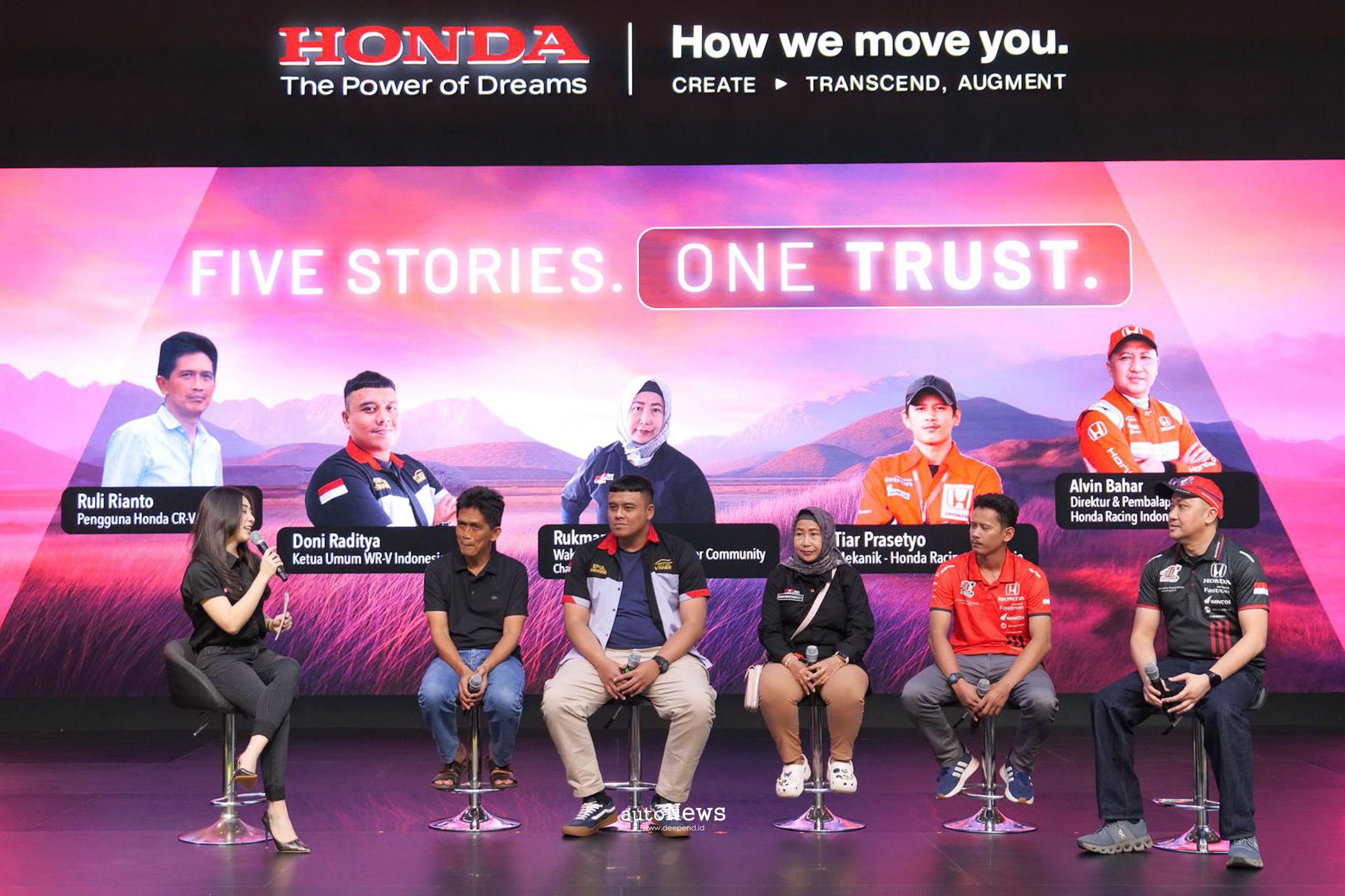 PT Honda Prospect Motor (HPM) menggelar talkshow bertajuk ‘Five Stories. One Trust.’ di IIMS 2026 yang mengangkat kisah nyata dari lima sosok dengan latar belakang berbeda. Dari pengguna harian, anggota komunitas, keluarga, hingga pembalap dan teknisi balap, semuanya berbagi satu benang merah, yakni kepercayaan yang tumbuh dari pengalaman nyata.
