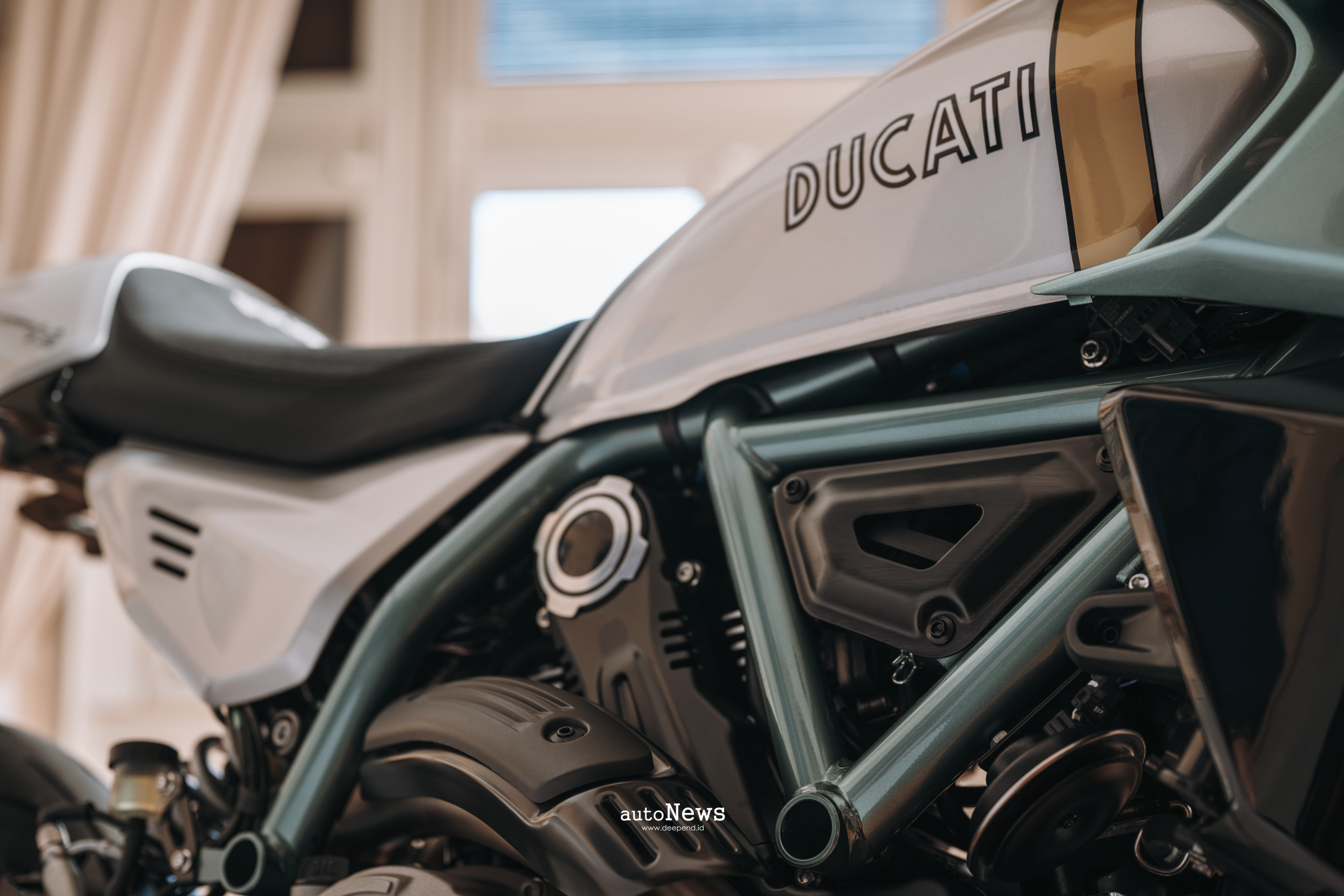 Formula 73 dirancang sebagai urban café racer modern dengan karakter kuat. Motor ini mengusung desain ramping dan minimalis, lengkap dengan livery perak dan hijau aqua yang terinspirasi langsung dari model asli tahun 1973. Detail seperti garis emas vertikal pada tangki, fairing pendek, setang clip-on, hingga spion bar-end menegaskan identitas klasiknya. Ducati Style Centre bahkan melakukan riset arsip historis untuk memastikan akurasi desain, menjadikan motor ini bukan sekadar kendaraan, tapi juga karya kolektor.