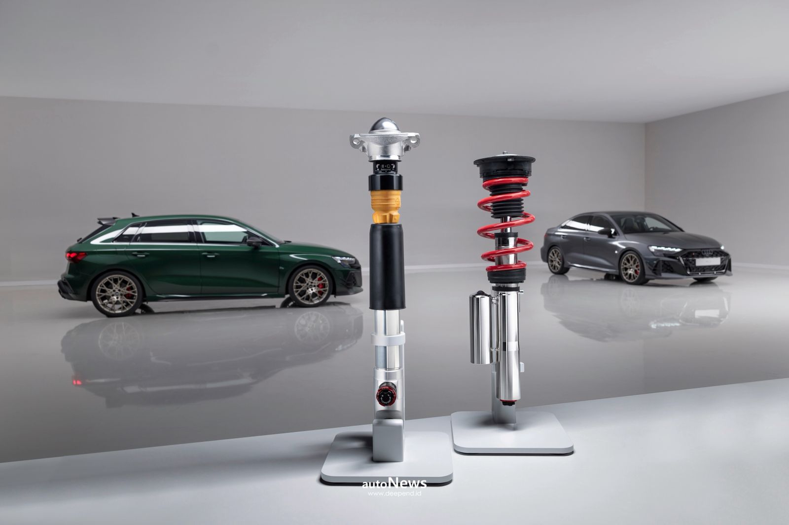 Salah satu perubahan terbesar adalah penggunaan suspensi coilover khusus yang untuk pertama kalinya hadir pada RS 3. Suspensi ini memungkinkan pengemudi menyesuaikan karakter mobil melalui pengaturan compression dan rebound hingga 16 tingkat, sehingga performa dapat disesuaikan dengan gaya berkendara maupun kondisi jalan.