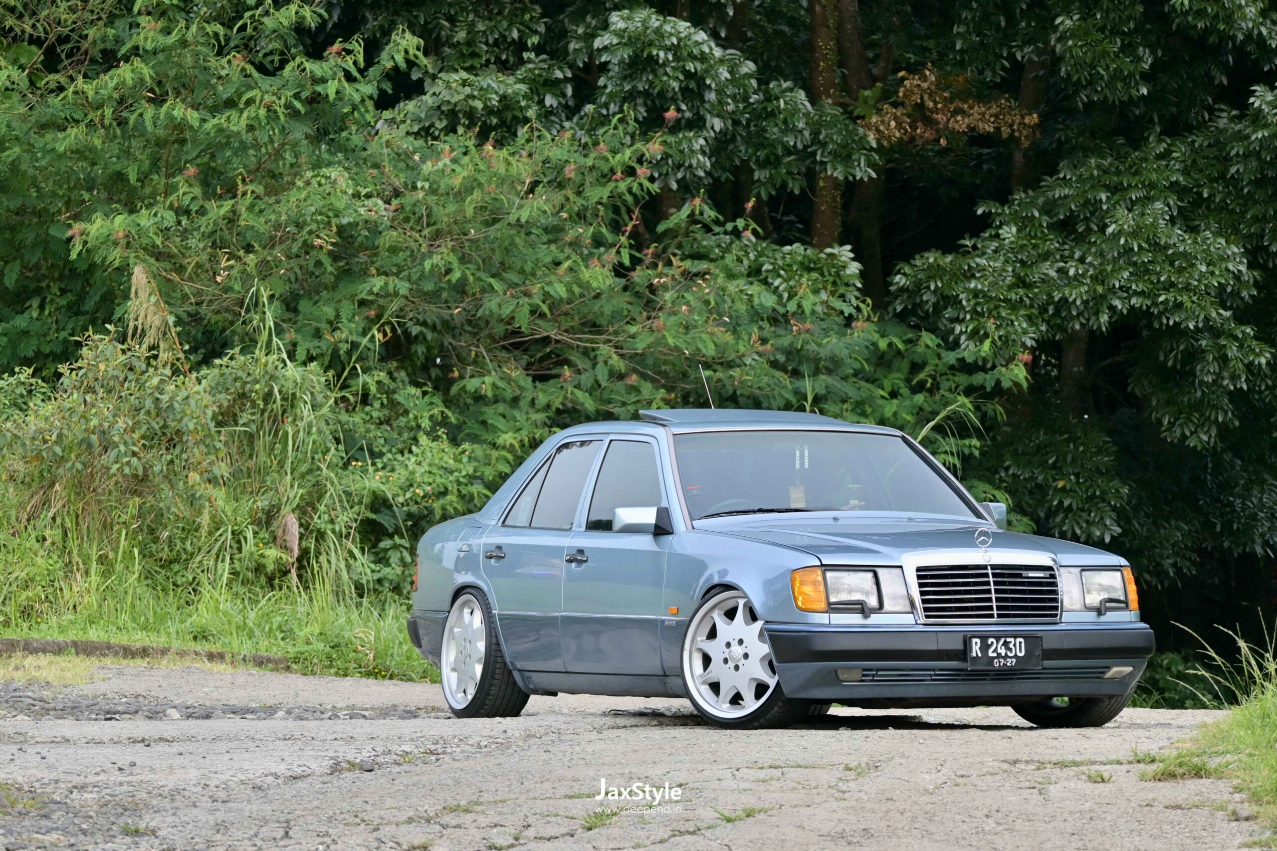 Konsep mobil ini sejak awal bukan untuk sekadar dimodifikasi, melainkan mengembalikan karakter asli W124 dengan nuansa tuner Jerman era 1990-an. Basis mobil tetap mendekati standar pabrik, tetapi diberi sentuhan visual melalui velg BRABUS Monoblock 3 Gen 1 berukuran 19×9.5 inci dengan suspensi lebih rendah dari Sportline. Interiornya menggunakan jok RECARO CSE.