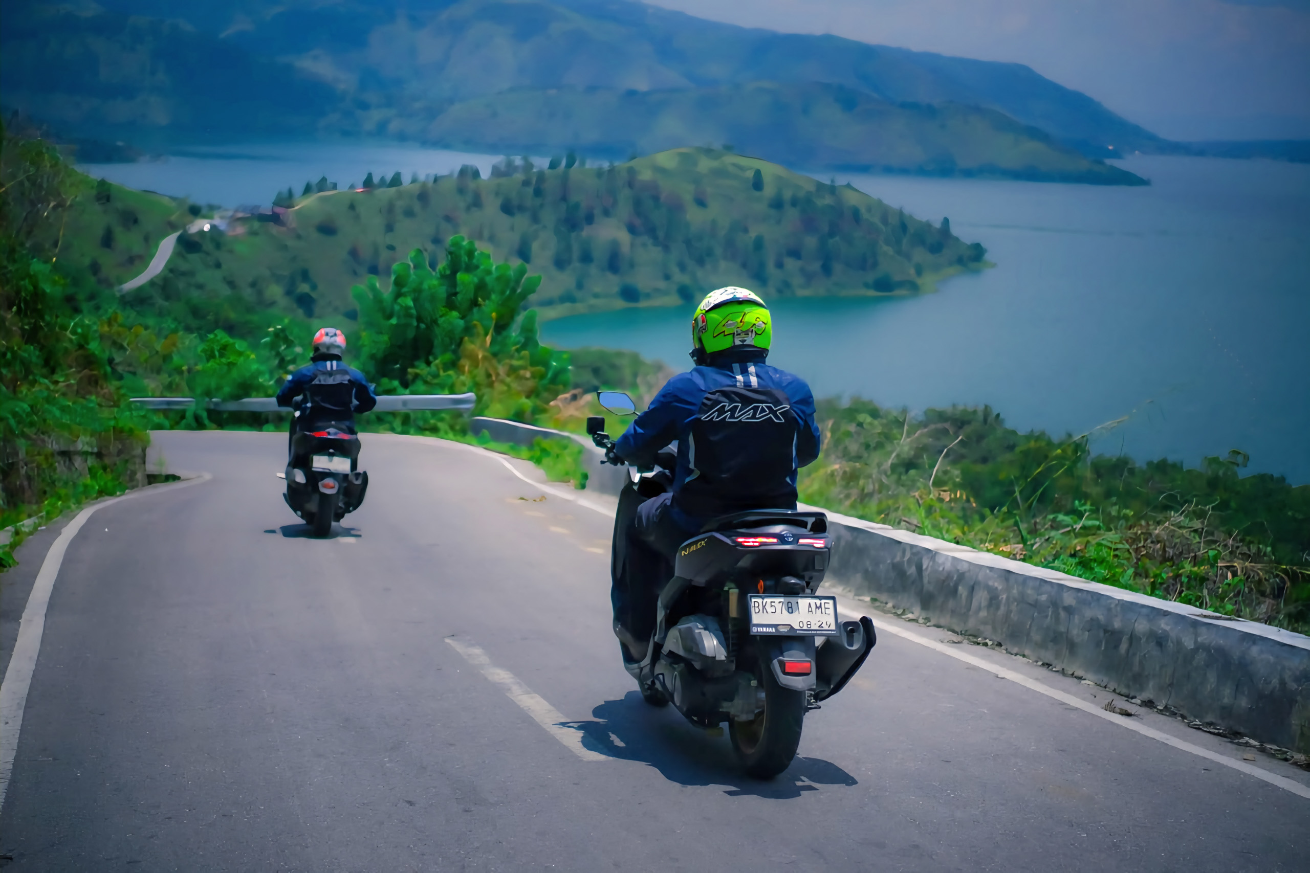 Rute yang dipilih cukup representatif untuk menguji motor sekaligus memanjakan mata. Start dari Balige, rombongan bergerak ke Tele, masuk ke Pulau Samosir, lanjut ke Parapat, lalu kembali lagi ke titik awal. Jalur ini menyajikan kombinasi medan, dari trek lurus, tanjakan panjang, turunan teknis, sampai tikungan berlapis yang khas wilayah Toba.